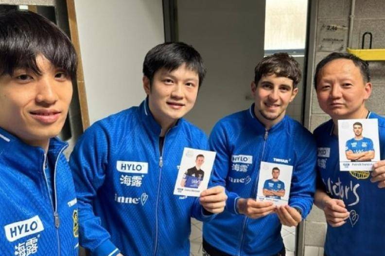 在团队庆祝的时刻,樊振东一改赛场上的专注与凌厉,露出了腼腆的笑容,与队友、教练和俱乐部领导一一击掌,流露出温暖的一面。即使是赛后有对手前来索要签名,他也欣然应允,展现了巨星的风采。值得一提的是,由于队友弗朗西斯卡缺席比赛,而达科也提前离场,在赛后球队合影留念时,樊振东与其他队友一起高举了缺席队员的照片,显得十分贴心。
